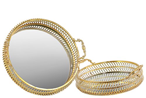 Urban Trends Round Tray with Mirror Surface and Handle Metal Finish, Gold