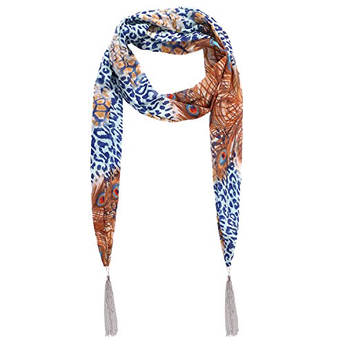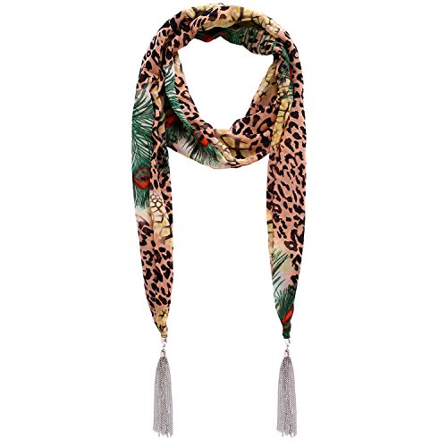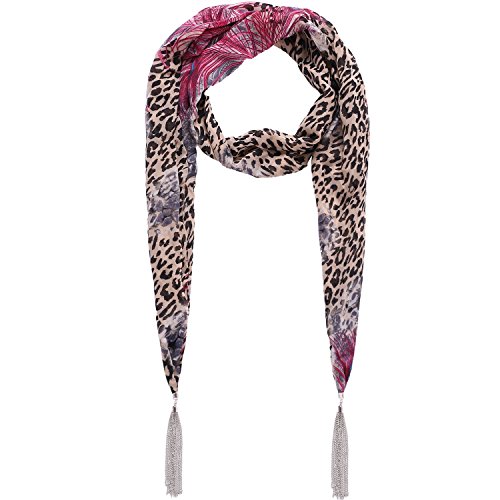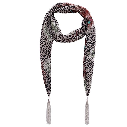 -. Title : LERDU Women's Leopard Print Long Skinny Silk Necklace Scarves Chiffon Tassel Scarves