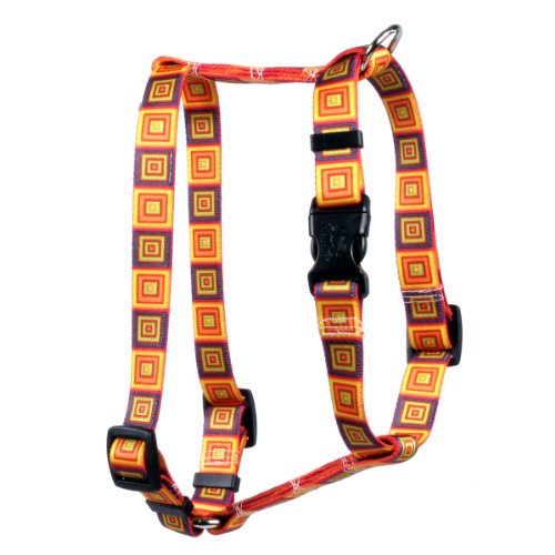 Studio : Yellow Dog Design Publisher : Yellow Dog Design Binding : Misc. Product Description This is the Orange Blocks Roman Style "H" Dog Harness - Size Large - 1 Inch Wide and fits Chest Circumference of 20 to 28 inches from Yellow Dog Design, the roman, or "H", harness is perfect for dogs with necks that are larger than their head or dogs that pull. Made right here in the USA and provides more control without a choking effect. SIZING: This dog harness utilizes a quick clasp closure, also called a side release clasp. Sizing is given as a range of chest widths. Measure your dog around the widest part of its chest, usually just behind the front legs. If you are shopping for designer, affordable dog accessories, then look no further. These durable, guaranteed to last dog products have no rough edges, no threads to fray or break, no problem going in the wash, and no stress getting them on or off your dogs. 0