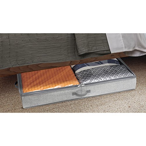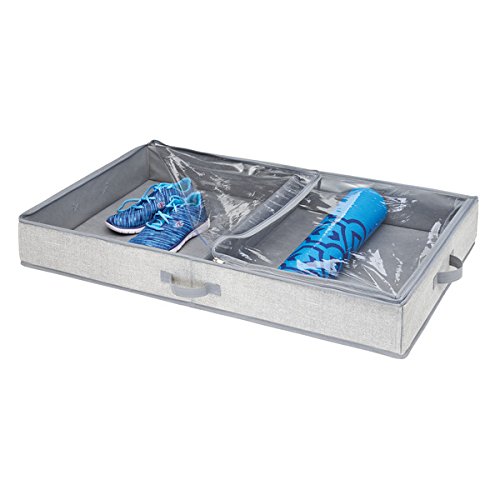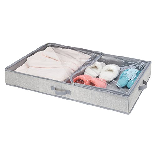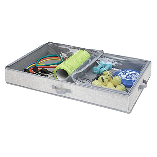 mDesign Under Bed Storage Organizer Box for Clothing, Purses, Shoes - 2 Compartments, Gray
