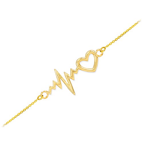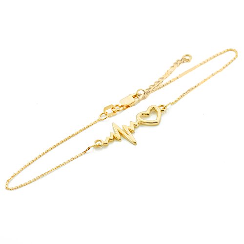 -. Binding : Jewelry -. Brand : Heart Pendants -. Department : womens -. Feature : 7.5-inch link bracelet with a heart beat symbol and half-inch extender / finely crafted with solid 14 karat yellow gold / comes with free special gift packaging / made in the USA yet offered at factory direct jewelry P.R.Ice / ships from the manufacturer directly to the customers -. Label : Claddagh Gold -. Manufacturer : Claddagh Gold -. Model : B847 -. ProductGroup : Jewelry -. ProductTypeName : FASHIONNECKLACEBRACELETANKLET -. Publisher : Claddagh Gold -. Studio : Claddagh Gold -. Title : Dainty 14k Yellow Gold Heartbeat Bracelet, 7.5" Adjustable to 8"