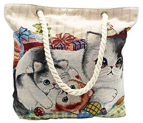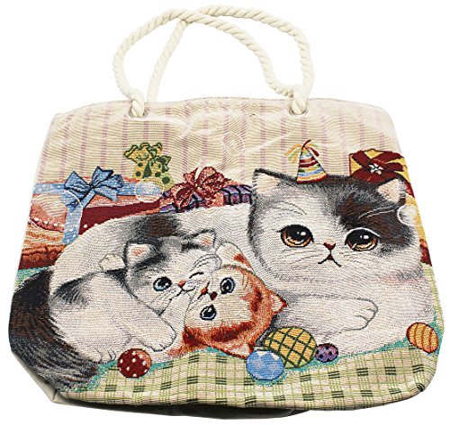 SIMPLE POCKET Jacquard Fabric, Pocket with Wipper Shoulder Bag Tote Bag Three Cats