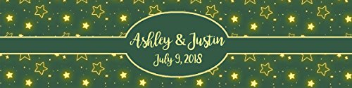 Glowing Stars on Green background Wedding Anniversary Birthday Water Bottle Labels
