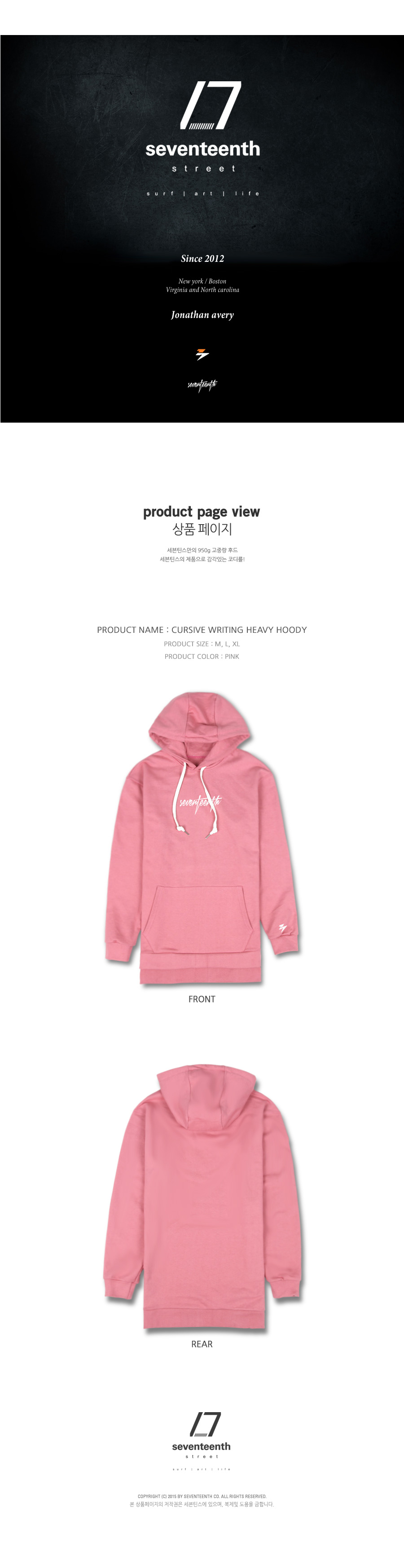 SEVENTEENTH CURSIVE WRITING HEAVY HOODY - PINK