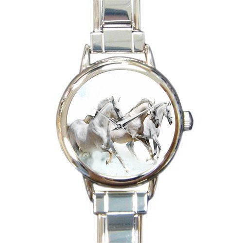 -. Binding : Misc. -. Brand : Horse Watch -. Color : Liightgrey -. Department : Mens -. EAN : 6065700676133 -. Feature : 100%stainless steel / The watch band comes with 16 starter links / The watch face measures approximately 7/8". / MIYOTA stainless quartz cassette mechanism and battery / Best Birthday Gift Soft black plastic watch strap and hard plastic watch winder -. Label : Horse Watch -. Manufacturer : Horse Watch -. ProductGroup : Sports -. ProductTypeName : SPORTING_GOODS -. Publisher : Horse Watch -. Size : 0.75x3.4 -. Studio : Horse Watch -. Title : Personalized Watch Black Horse Running in the Water Round Italian Charm stainless steel Watch