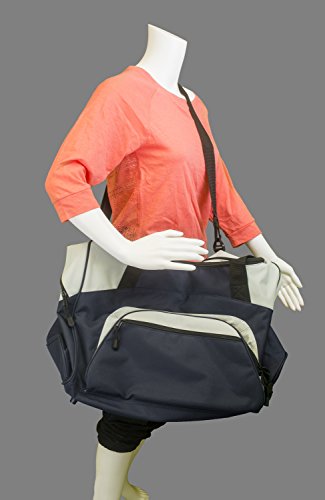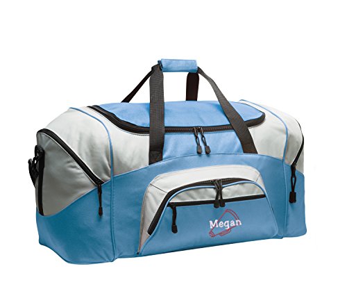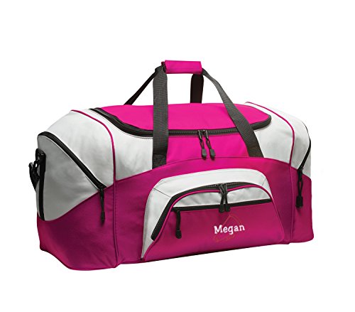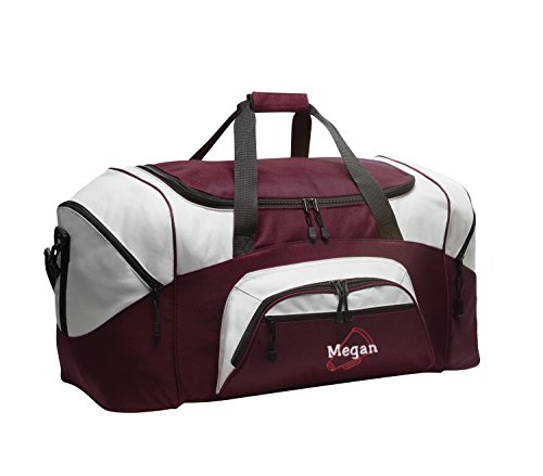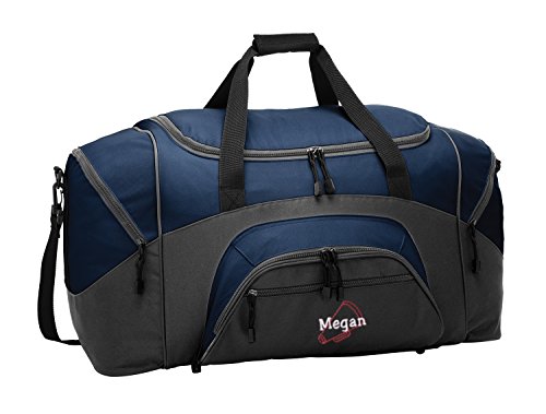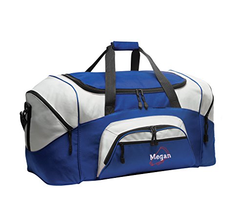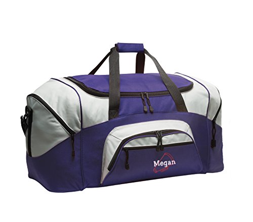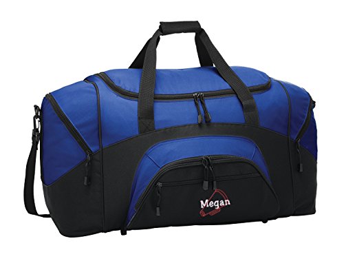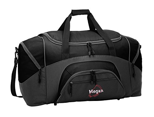 Product Description Extras D-Shaped Zippered Entry for Easy Access in Main Compartment Two Large Zippered End Pockets Two Exterior Zippered Pockets on Front Padded Handle Detachable, Adjustable Shoulder Strap Two Front Zippered Pockets Two Large Side Pockets Larger Version of BG990s Keeping organized during your active lifestyle has never been easier thanks to this Megaphone personalized sports duffel gym bag with hand and adjustable shoulder straps by all about me company. This heavy-duty sports duffel bag is the perfect choice for a day at the gym or a weekend getaway with some friends. It has a large, easily accessible main compartment for all your essential needs with two separate side pockets that can fit extra clothes, small shoes, and accessories. The front of the bag also has two smaller, zippered compartments that is the perfect size for your wallet, keys, and other smaller items. Material 600 denier polyester canvas makes this bag heavy enough to hold anything you can fit into it without worrying about rips or tears. The seams on this bag are reinforced and tightly sewn to ensure it will not break apart when put to the test because you deserve the best! Size The measurements for this bag are 12.75 inches high by 27.25 inches wide and 13.5 inches deep with 4,690 cubic inches of space. This makes it big enough to carry multiple days? worth of clothing as well as other, smaller accessories in the side and front pockets. This bag is the larger version of BG990s. Closure and Handles This bag comes with a detachable, adjustable shoulder strap that can be worn across the chest or on the shoulder in addition to two hand straps for quick pick up and carrying. All closures are made with heavy-duty zippers that are built to last. Colors Black/Dark Charcoal, Black/Grey, Carolina Blue/Grey, Gold/Grey, Hunter/Grey, Maroon/Grey, Military Camo/Black, Navy/Dark Charcoal, Navy/Grey, Purple/Grey, Red/Grey, Safety Yellow/Black, Tropical Pink/Grey, True Red/Black, True Royal/B 0