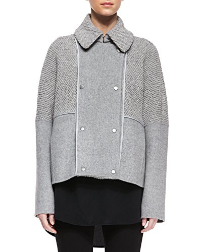 A double-breasted front and structured spread collar lend polish to a substantive wool coat, while the boxy silhouette adds to the contemporary aesthetic of this outerwear staple. 25 1/2" length (size Medium). Front snap closure. Spread collar. Front slant pockets. 89% wool, 11% nylon with 70% wool, 24% polyamide, 6% acrylic contrast. Dry clean. By Vince; imported.Feature