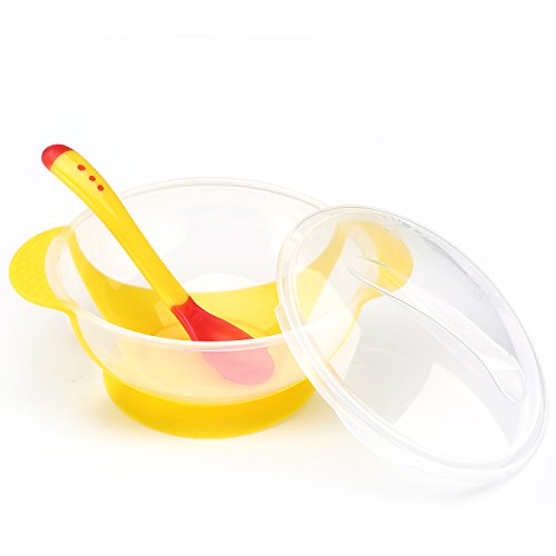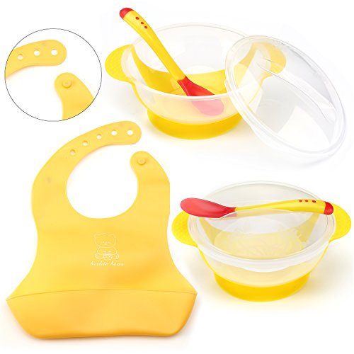 Washable Baby Bib (1 Yellow) + Non Slip Suction Bowl & Utencils (1 Yellow) for Babies and Toddlers