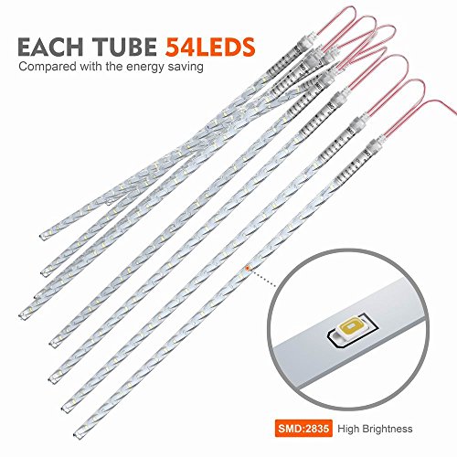 【BRIGHTNESS】SUPER BRIGHT SMD2835 LED chips (instead of cheap dim 3528 LED chips) provide 360 degree shining angles, which makes the falling rain lights MUCH BRIGHTER and BEAUTIFUL. The light of every bulb turns on and out one by one in sequence and quickly just like meteor shower or falling snow in the night sky.