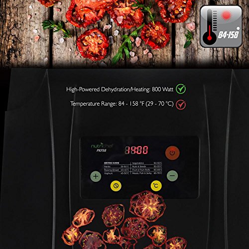EASY ACCESS & OPERATION: Built with easy to use one operational button with a digital display. Choose to dehydrate with just a click. It has a temperature control system ranging from 84 to 158 degrees.