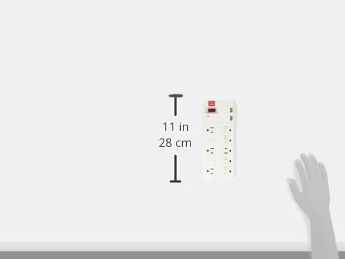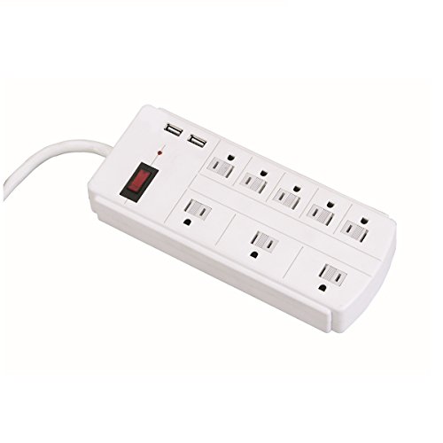 Globe Electric 8-Outlet Surge Protector Power Strip, 2x USB Ports, Circuit Breaker Switch, Safety Covers, White Finish, 78237