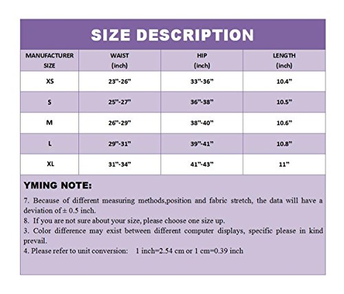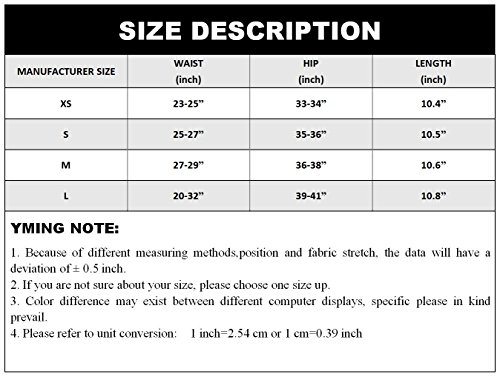 Binding : Apparel Product Description Please use our own Size Chart rather than Amazon size guide, and choose the proper size based on your HIP size. SIZE by YMING: S( WAIST 23 inch -26 inch , HIP 33 inch -36 inch , LENGTH 10.4 inch ) M( WAIST 25 inch -27 inch , HIP 36 inch -38 inch , LENGTH 10.5 inch ) L( WAIST 26 inch -29 inch , HIP 38 inch -40 inch , LENGTH 10.6 inch ) XL( WAIST 29 inch -31 inch , HIP 39 inch -41 inch , LENGTH 10.8 inch ) XXL( WAIST 31 inch -34 inch , HIP 41 inch -43 inch , LENGTH 11 inch ) 0