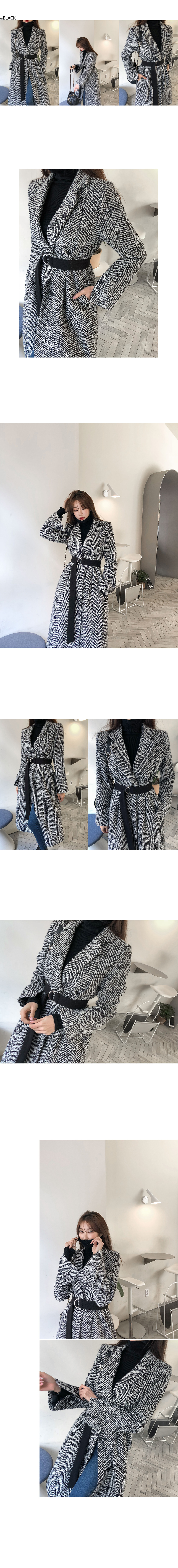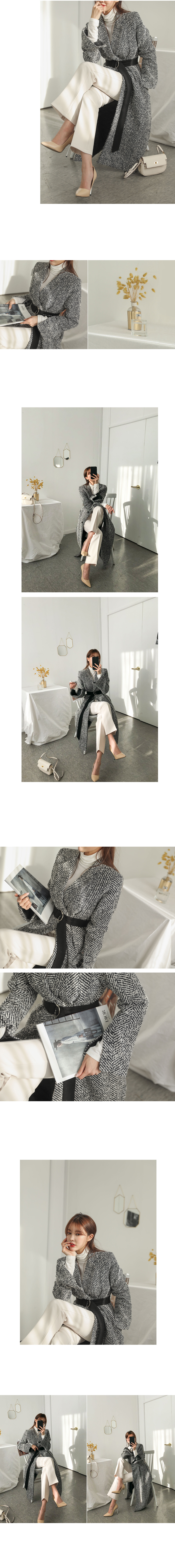 심플한 룩에 툭 걸쳐만 주어도 시크한 엣지를 더해주는 헤링본 울코트를 소개해드릴게요~! 롱한 기장감으로 안정감있으면서 따뜻하구요 울이 함유된 고퀄리티 원단으로 제작되어 보온성이 높아요 깔끔한 카라넥와 소매단추 디테일로 클래식한 디자인이구요 세트로 구성된 벨트로 허리라인을 강조할 수 있어요 때문에 엣지있는 스타일링이 가능하며 날씬해보인답니다. 블랙과 화이트로 믹스된 헤링본패턴으로 유행에 구애없이 오랫동안 사랑받을 패턴과 디자인이여서 더욱 소장가치있어요 데님과 원피스,슬랙스 다양한 아이템에 잘어울려서 데일리룩부터 오피스룩까지 실용성 높은 코트랍니다. 사이즈는 FREE로 44반사이즈를 입는 모델에게 살짝 여유감있게 예쁘게 잘 맞았는데요, 44사이즈분들부터 66사이즈분들까지 추천드리고 싶어요 다만,겨울이다 보니 두꺼운 이너와 함께했을때 체형에 따라 핏감이 다를 수 있으니 하단에 있는 상세표를 참고부탁드리겠습니다~