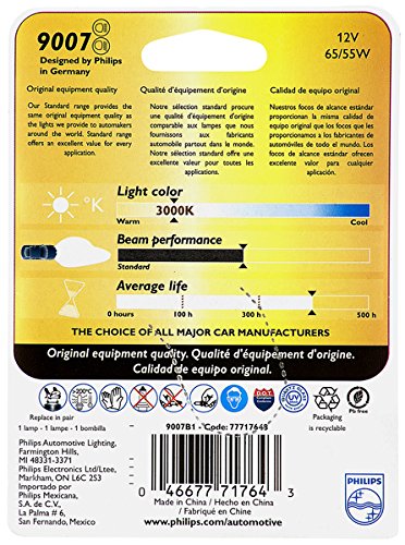 Philips 9007 Standard Halogen Replacement Headlight Bulb, 1 Pack
