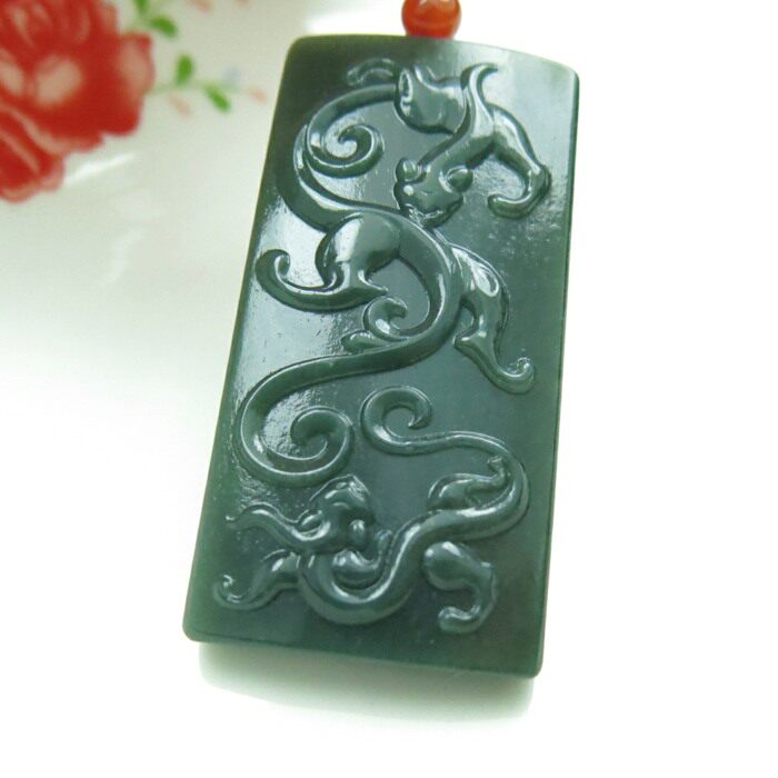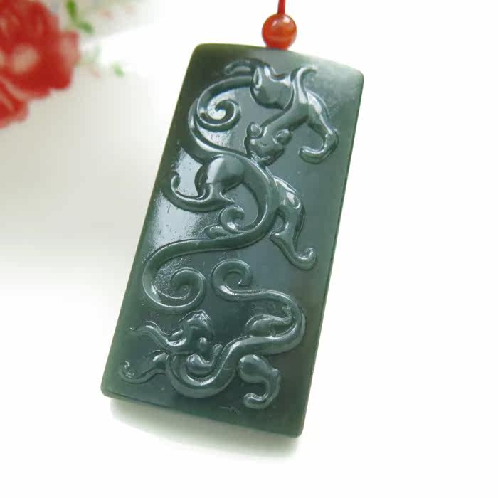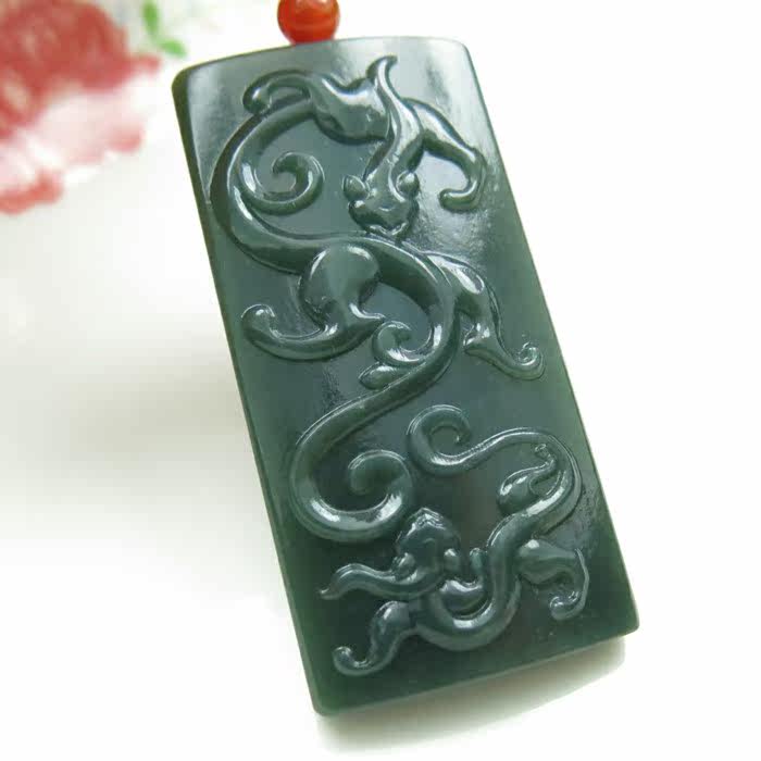 和田玉正品黑青玉双龙戏珠挂牌青玉龙挂件黑青玉挂件