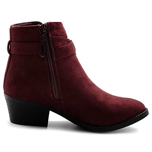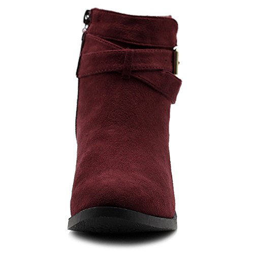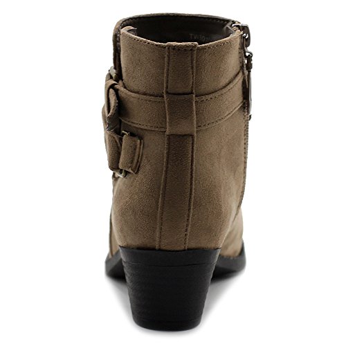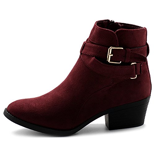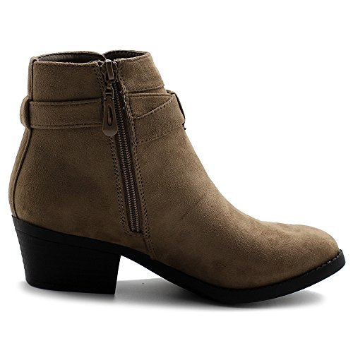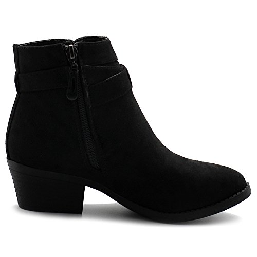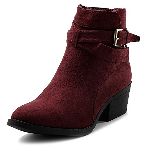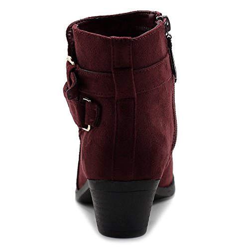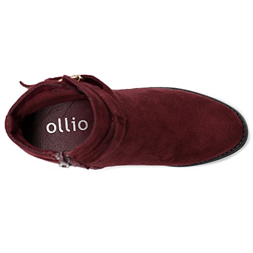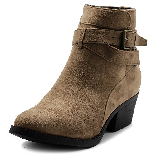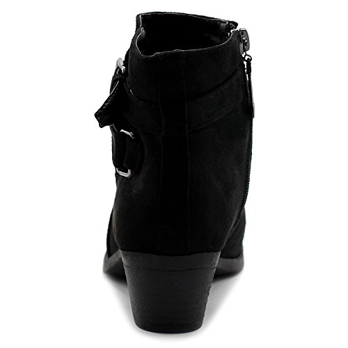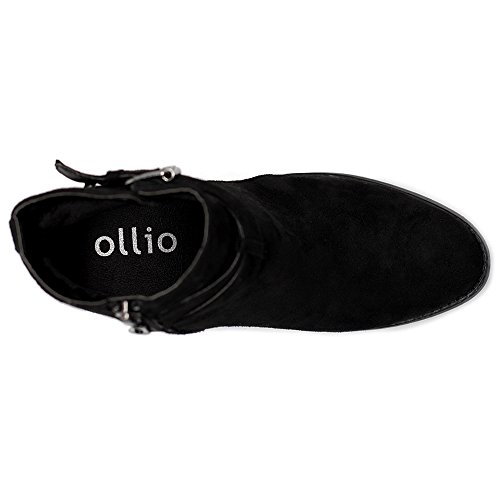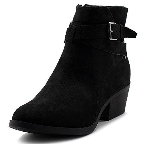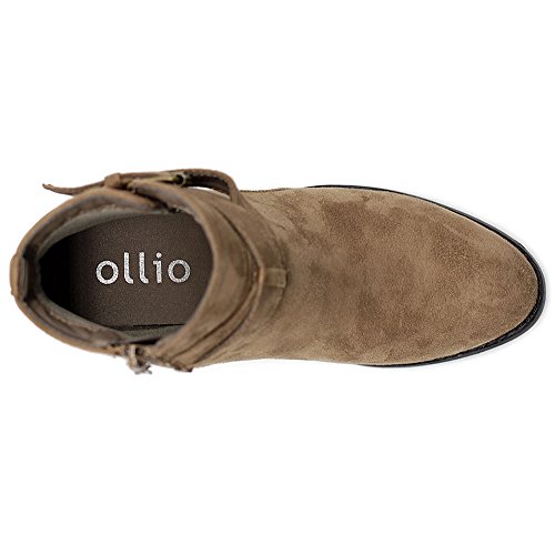 Ollio Women's Shoes Faux Suede Buckle Straps Stacked Heel Ankle Boots