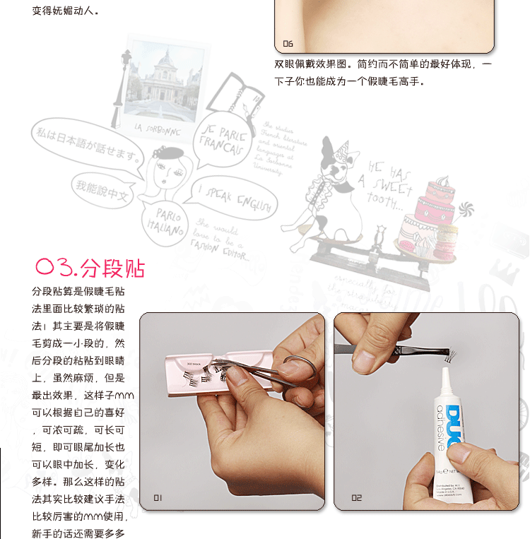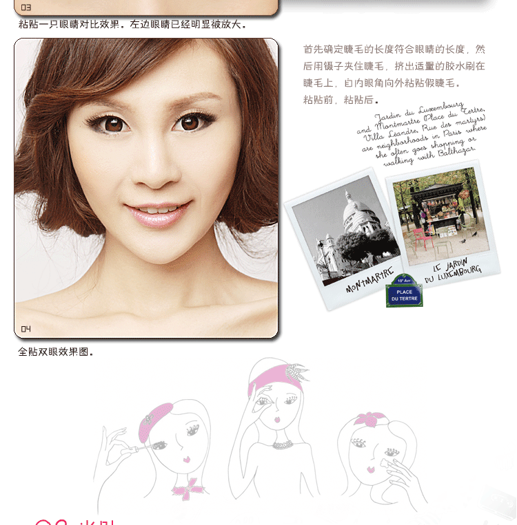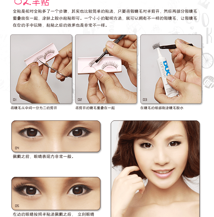 相信妳一定知道了搽睫毛膏之於眼睛的重要性,因為上妝后的睫毛会呈现放射狀的效果,让眼睛在視觉上有变大的错觉,其实有一个更厲害的方法,就是戴上假睫毛!別以為假睫毛妝效一定很夸张,其实只要戴的有技巧,就能创造宛如天生般的眨巴眨巴大眼睛。