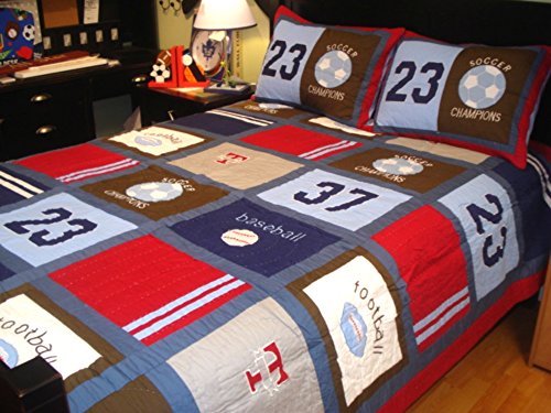 Boys Bedding Twin, Patchwork Style Quilts For Boys With Appliques, 1 Sham, 100% Cotton, 68 x 86...