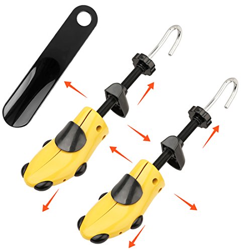 Halcent Tough Plastic & Metal Shoe Stretcher Pair of 2-Way Shoe Stretchers Expander for Professional Shoe Stretching Length and Width Shoe Shaper Tree with Buttons Shoe Horn for Men and Women (Large)