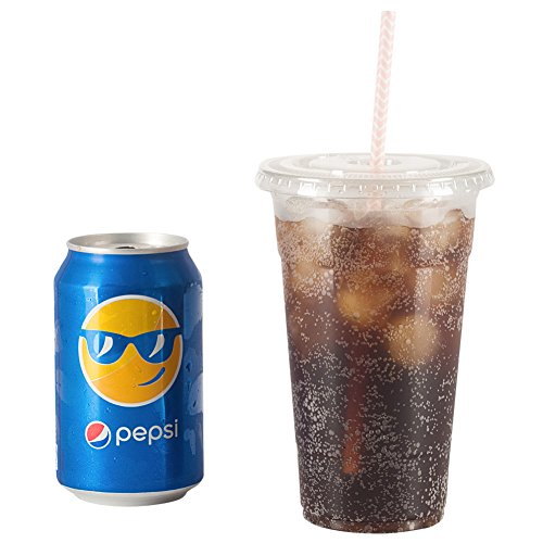 Benail 100 Sets 24 oz. Plastic CRYSTAL CLEAR Cups with Flat Lids for Cold Drinks, Iced Coffee, Bubble Boba, Tea, Smoothie etc.