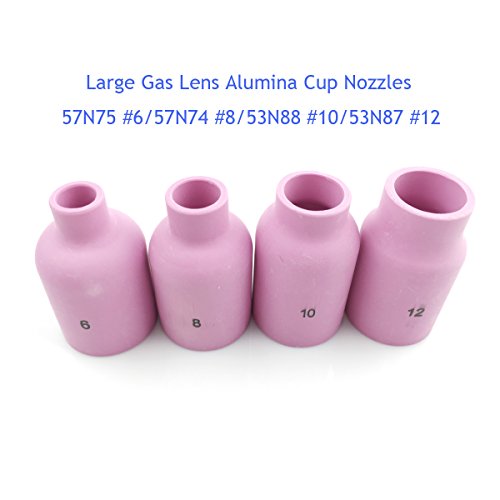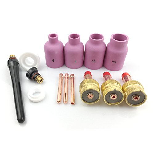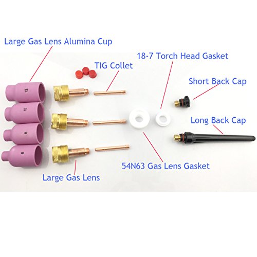4pcs Large Alumina Cups(57N75 57N74 53N88 53N87) 3pcs Tig Torch Collet and Large Gas Lens(1/16"-1/8") Back Caps Long and Short. 1pc of each 18-7/54N63 gasket insulator