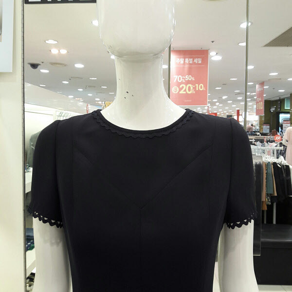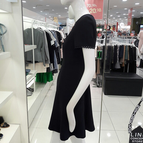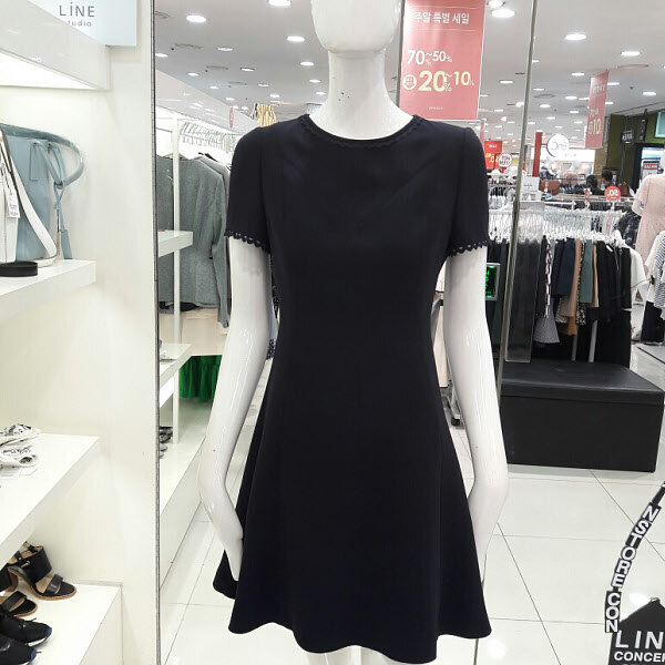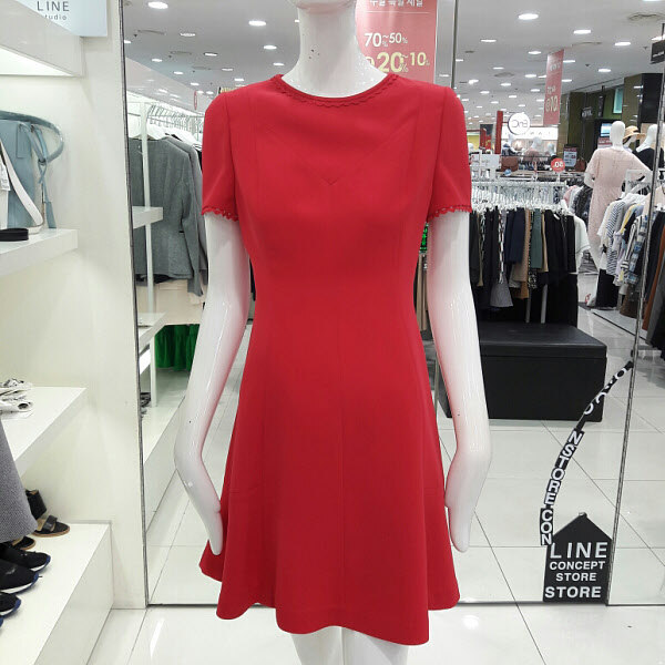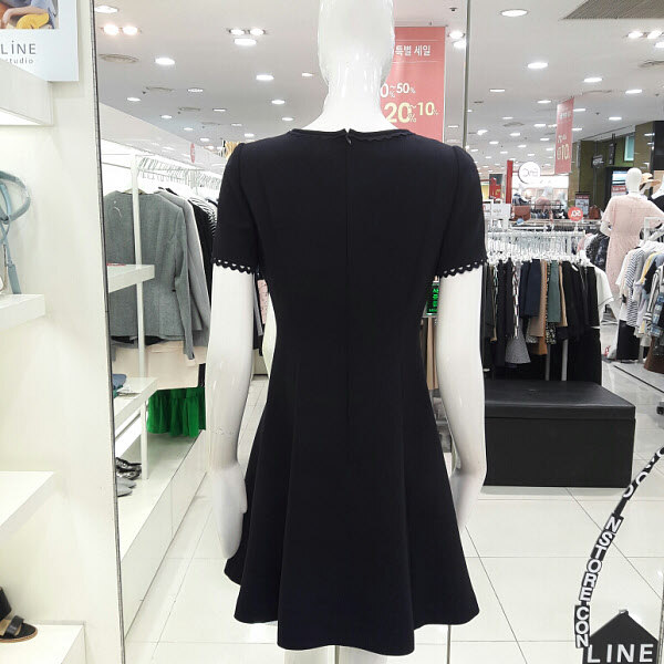 목선과 소매끝단에 레이스포인트가 여성스러운 플레어원피스입니다 허리라인이 슬림하게 떨어지는 깔끔한 디자인으로 사랑스러운 분위기의 원피스입니다 17년여름 신상으로 가격인하된 제품입니다