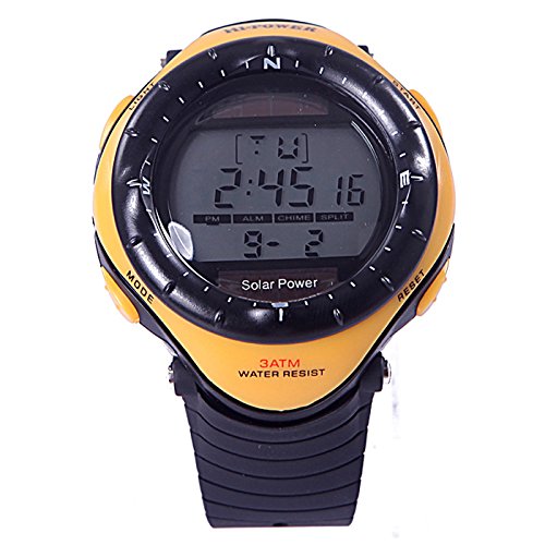 -. Title : HDE Men's Solar Power Water Resistant Digital Chronograph Stopwatch Sports Watch