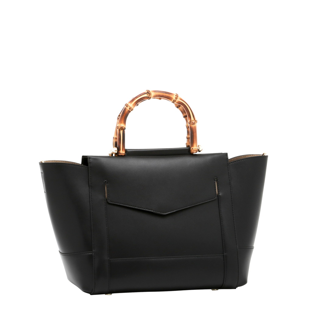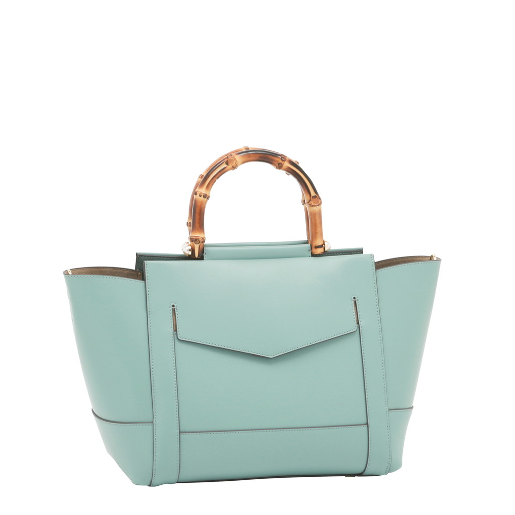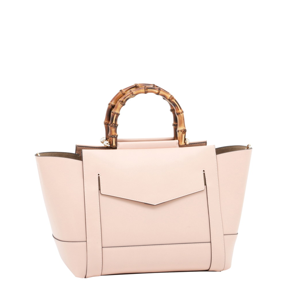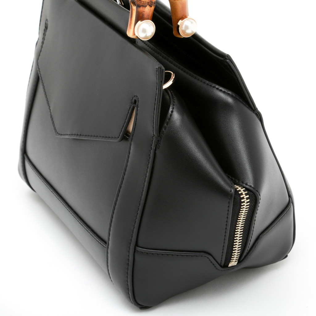 バンブーハンドルにパールを組み合わせたレディライクなミニボストン。淡い光沢を纏ったレザーが控えめでラグジュアリーな魅力に富んでいます。また、フロントの大きなポケットや内側のセパレートポケットなど機能的なデザインもポイント。調節可能なショルダーで、肩から上品に掛けたり、クロスボディとしてもご使用いただけます。