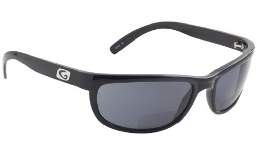 Guideline Eyegear Hatteras Bifocal +2.50 Sunglass, Shiny Black Frame, Deepwater Gray Polarized Lens, Medium/Large