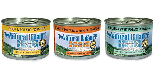 Natural Balance LID Limited Ingredient Grain Free Dog Food in 3 Flavors - Chicken & Sweet Potato, Duck & Potato, and Sweet Potato & Fish - 12 Cans Total (4 Cans of Each Flavor, 6 Ounces per Can)