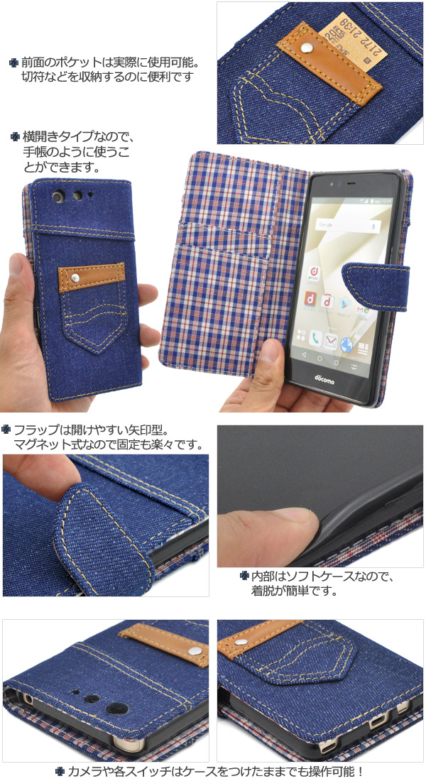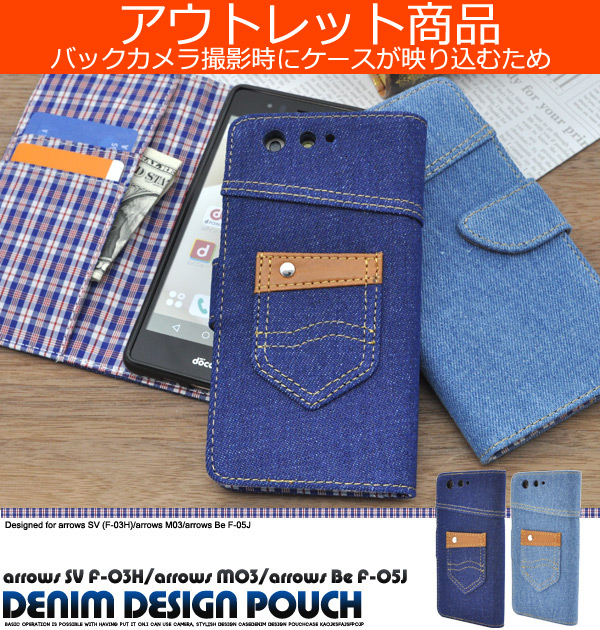 arrows SV (F-03H)/arrows M03/arrows Be?F-05J用 デニムデザインケースポーチ(ジーンズデザイン)