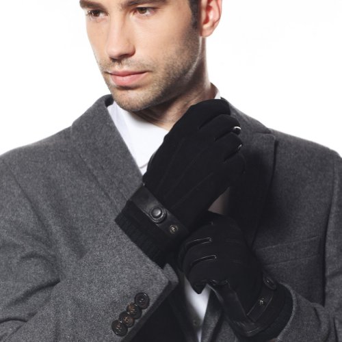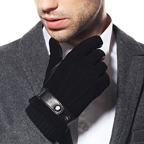 Classic Men's Texting Touchscreen Sheepskin Suede Leather Driving Gloves for Iphone Smartphone
