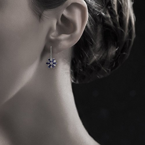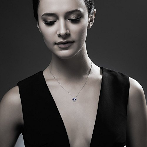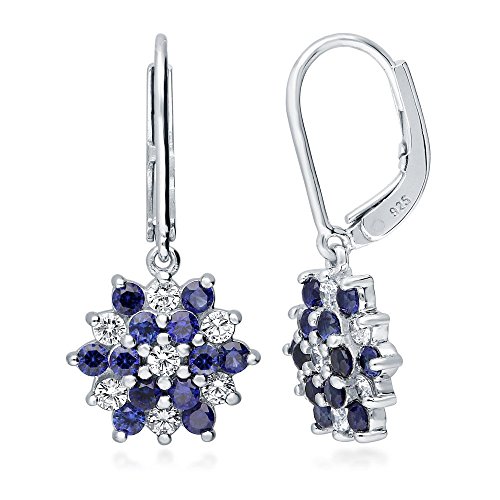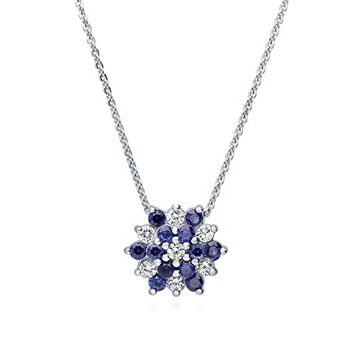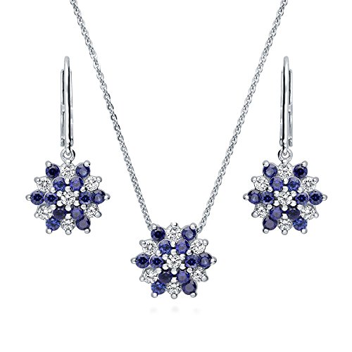 -. Title : BERRICLE Sterling Silver Simulated Blue Sapphire Cubic Zirconia CZ Flower Necklace and Earrings Set