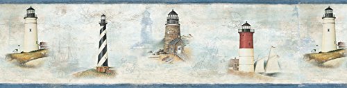 -. Title : Brewster DLR53502B Chapin Blue Sunset Waters Border Wallpaper,