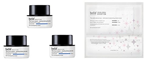 -. Title : Belif The True Cream Moisturizing Bomb 10ml (0.34fl oz) X 3 (Trial Sample Size) & 1 The White Decoction Ultimate Brightening Sheet Mask
