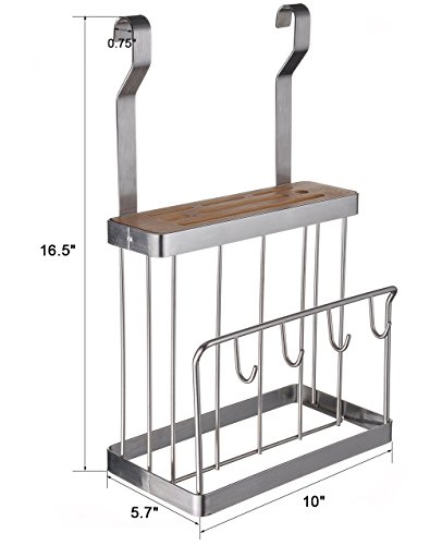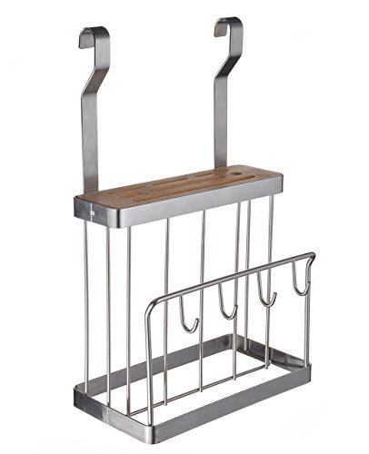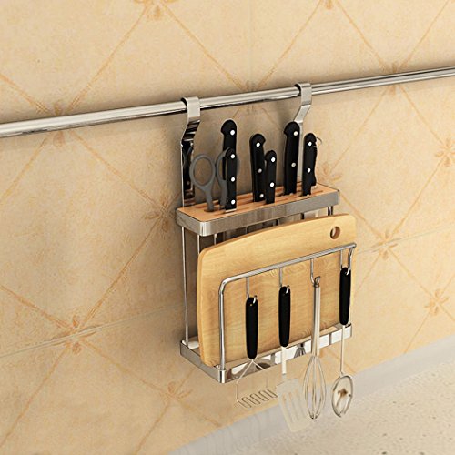 ESYLIFE STAINLESS STEEL WALL MOUNTED CUTTING BOARD HOLDER WITH KNIFE BLOCK SET SLOTS,SLIVER