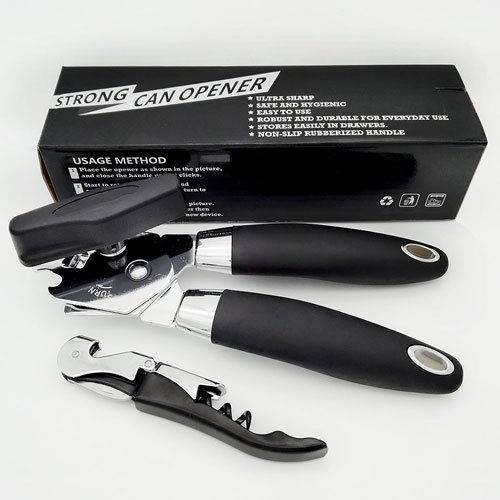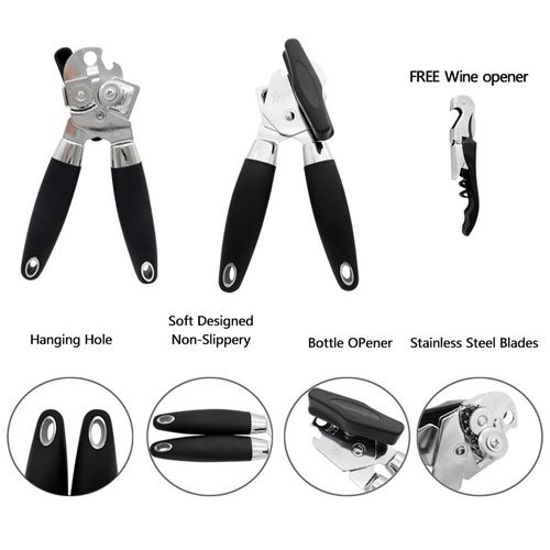 MUTIFUNCTIONAL - Open bottle cap,open can lid, lift can tab . Bouns corkscrew can open wine cork. Sharp cutting disc effortlessly cut the sturdiest can. Ideal kitchen tool set.