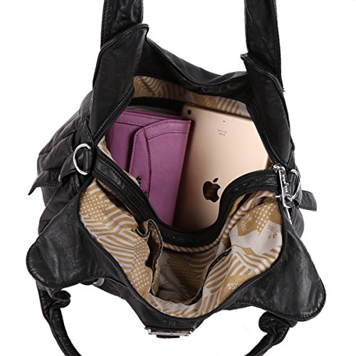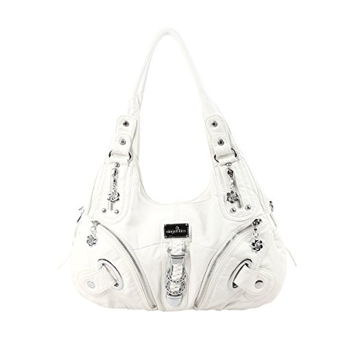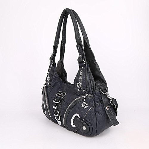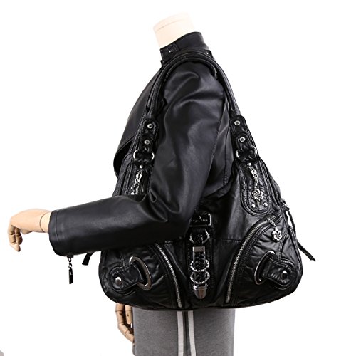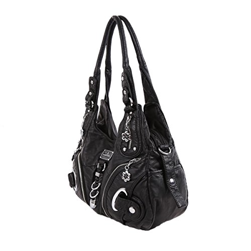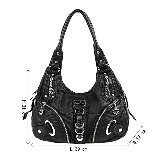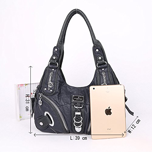 -. Title : Angelkiss Two Top Zippers Closure Multiple Pockets Purses and Handbags Washed Leather Shoulder bags Women AK11282