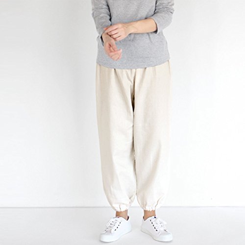 -. Feature : 素材:表地(綿85%・麻15%)  裏地(綿100%) / ウエスト(ゴム仕様):約54~90cm ヒップ:約110cm 総丈:約85cm 股上:約37cm 股下:約53cm わたり幅:約33cm すそ幅(ゴム仕様):約13~19cm / サイズ:婦人フリーサイズ