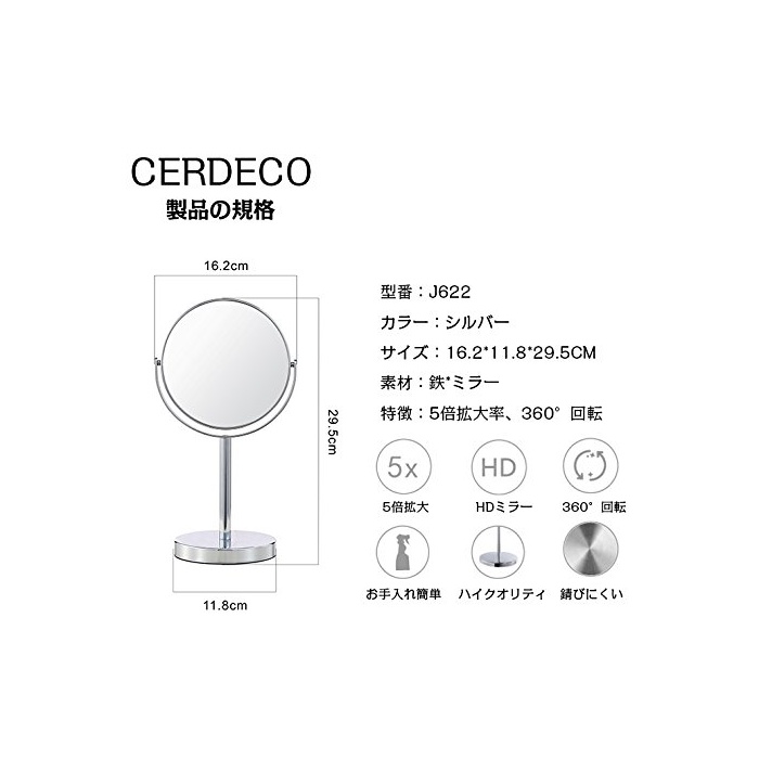 원본상품명: (セ?ディコ)Cerdeco シンプルデザイン ??の?面鏡DX 5倍?大鏡 360度回? 卓上鏡 スタンドミラ? メイク 化粧道具