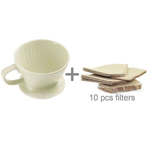 -. Brand : Dowonsol -. Color : Black -. Feature : Sturdy, lightweight pour-over coffeemaker, perfect for travel / Manual brewing method allows you to choose your ideal brew time and temperature, ensuring a perfect cup of coffee / Coffee flows through the cone directly into your cup or coffee pot / The coffee dripper controls the flow, timing and temperature of the water / Professional Experience. Size 101: 1-2 cups, Size 102: 2-4 cups, you could also choose to order 10pcs filters. -. Label : Dowonsol -. Manufacturer : Dowonsol -. Model : CM-W -. PackageQuantity : 1 -. ProductGroup : Kitchen -. ProductTypeName : KITCHEN -. Publisher : Dowonsol -. Studio : Dowonsol -. Title : DOWONSOL Ceramic Porcelain milky white Coffee maker Dripper with 10pcs filters Sever Set Coffee Filter Cone