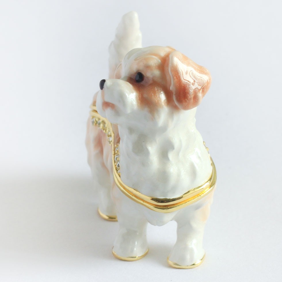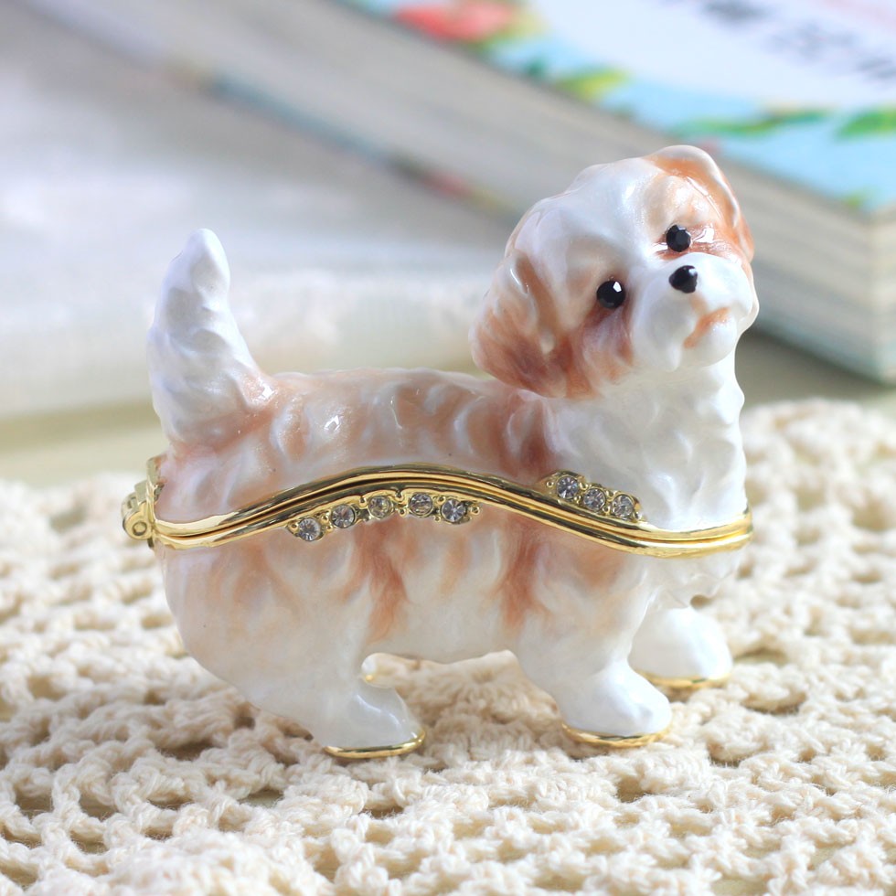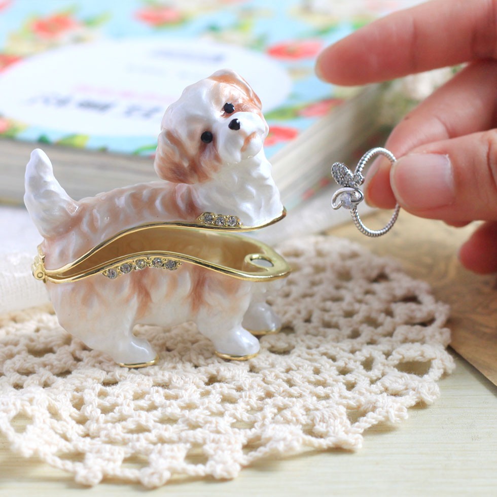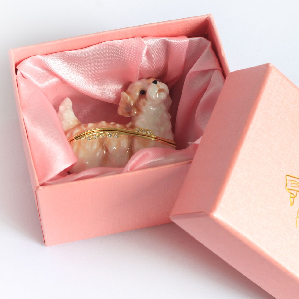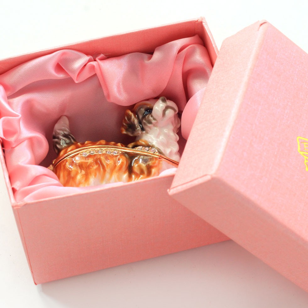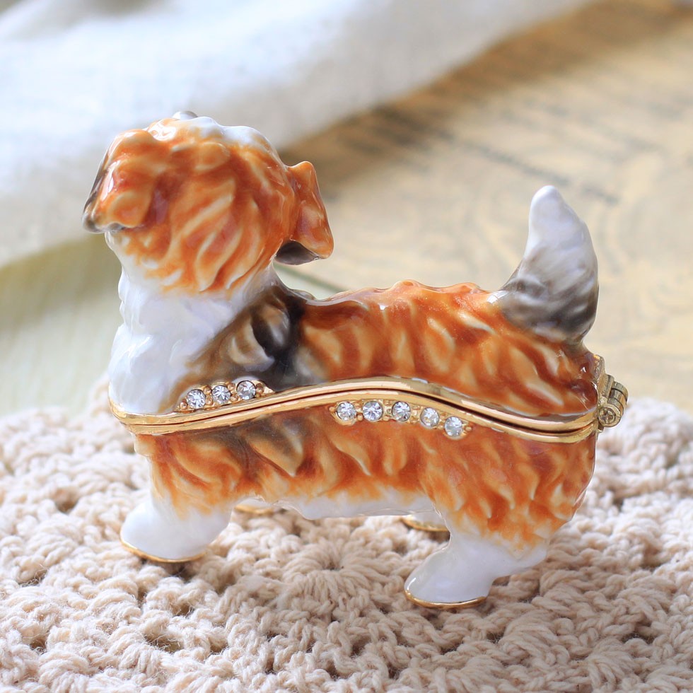| ジュエリーボックスと言えば、指輪やピアス、ネックレスなどのアクセサリーを入れる引き出し型のケースを思い浮かべる方が多いかもしれません。 ピィアースのジュエリーボックスは、動物や花などをモチーフに作られ、合金製でずっしりとした重さがあります。また高品質のクリスタルガラスを贅沢に使用。まるでジュエリーボックスそのものが宝石のような、高級感溢れる仕上がりです。 小物入れとしても使えるように開閉口には磁石が取り付けてあり、アクセサリーなどなくしやすいアイテムの収納ができます。キラキラと美しく輝く宝石箱は、そのまま飾って楽しめるインテリア雑貨として多くの方に愛されています。 国内トップクラスのジュエリーボックスメーカーであるピィアースは、2004年ごろから本格的に宝石箱の製造を始め、現在のジュエリーボックスはなんと300種類以上。大規模展示会でもご好評いただいており、全国有名百貨店でも販売されています。 自社工場でひとつひとつ丁寧に手作りし、原型作成、研磨、加工、着色、小さなクリスタルガラスの取り付けなども全て手作業で行われるこだわりのハンドメイド品。完成後は厳しい検品の後、丁寧に梱包作業をしお客様にお届けしております。 ピィアース商品は、全国有名百貨店および全国有名宝石店チェーンにてお取り扱いいただいている高品質商品です。 ★自分へのご褒美に…コレクションして並べて飾ると、さらにかわいらしさUP! ★恋人へのプレゼント…中にアクセサリーを入れて、サプライズな贈り物として ★家族への感謝ギフト…お母さんや姉妹へ、日頃のありがとうの気持ちを込めて ★誕生日プレゼント…お友達の喜ぶ顔が見たいから、いつもと違うキラキラギフトを ★小さな女の子へ…まるでお姫様が使っているようなキラキラ宝石箱は女の子の憧れ! |