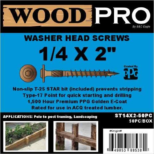 WoodPro Fasteners ST14X2-50PC 1/4-Inch by 2-Inch Length Round Washer Head Exterior Wood Screws, 50-Pack