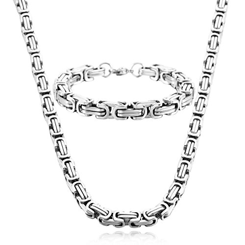 - Title : Silver Stainless Steel Bracelet Necklace Link Byzantine Chain Set