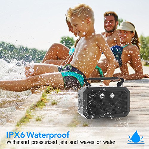 Portable IPX6 Waterproof Bluetooth Speaker:Rated IPX6 for resistance against dust and water, meaning the Speaker can withstand pressurized jets and waves of water. perfect for Party,Camping,Hiking,Traveling,Beach and more outdoor activities.