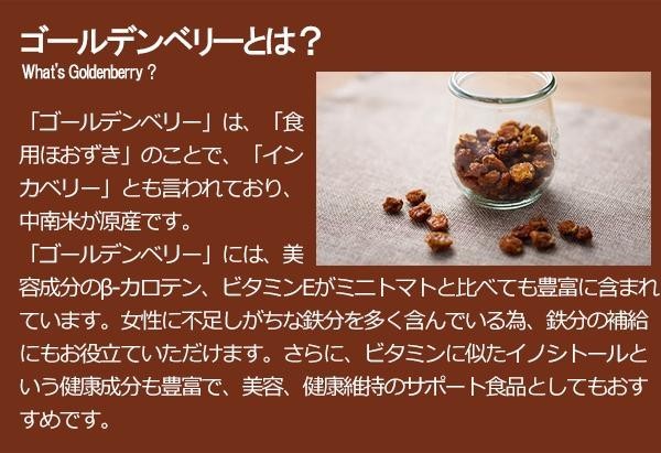 | 原材料 | 名称:乾燥果実 ゴールデンベリー(原産国:ペルー) |