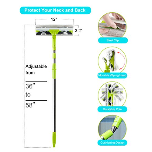 - NO MORE UNCOMFORTABLE WASHING - You'll never have to twist and bend your arms to clean angled windows again. 360 degrees adjustable head make cleaning more easier