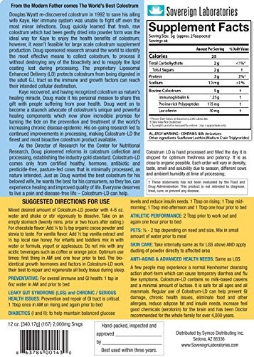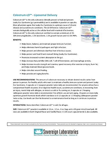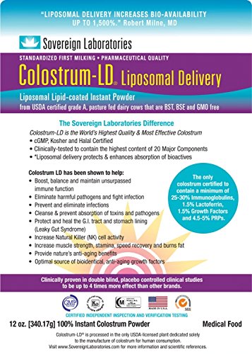 -. Feature : HIGH QUALITY COLOSTRUM - Made from grass fed, Grade A, dairy cows that are certified healthy, BST, BSE and antibiotic-free. Certified cGMP, Kosher, and Halal. / MAXIMUM STRENGTH - Clinically proven to be up to 400% more effective than other bovine colostrum brands. / MAY HEAL AND PREVENT LEAKY GUT - May help heal and prevent gut permeability (Leaky Gut ) caused by environmental factors such as toxins, pathogens (bacteria), acidic drinks, and pharmaceuticals. / MODULATE YOUR IMMUNE FUNCTION - May help repair, optimize and activate immune function P.R.Imarily by restoring and rejuvenating the GI tract. / 1-YEAR MONEY BACK GUARANTEE - All Sovereign Laboratories products are backed by a 1-year, 100% money back satisfaction guarantee.