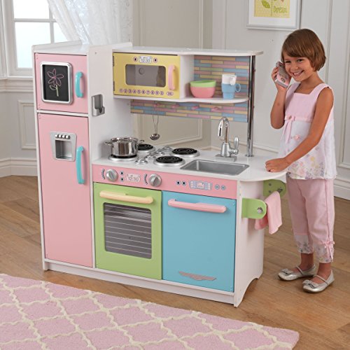 -. Binding : Toy -. Brand : KidKraft -. EAN : 0763366672709 -. Feature : Includes refrigerator, freezer, microwave, oven and dishwasher - Play plates, pots and food not included / Open shelves above the sink / Made of durable composite wood / All appliance doors really open and close / Dimensions: 43L x 17.75W x 41H in. - Sized for multiple kids to play together -. IsAdultProduct : 0 -. Label : Kidkrafts -. Manufacturer : Kidkrafts -. ProductGroup : Toy -. ProductTypeName : TOYS_AND_GAMES -. Publisher : Kidkrafts -. Studio : Kidkrafts -. Title : KidKraft Premier Pastel Pink Green Blue Pretend Hob Microwave Oven Kitchen -. UPC : 763366672709