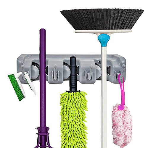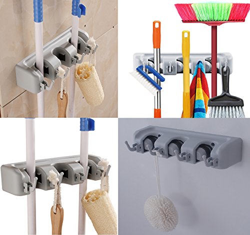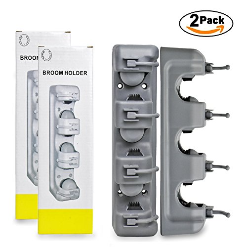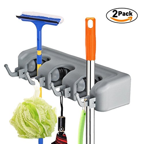 2 Pack Mop and Broom Holder - Broom Holder Wall Mounted - Garage Storage Rack&Garden Tool Organizer - 3 Position with 4 Hooks for kitchen, Laundry, Garden and Garage by LETMY
